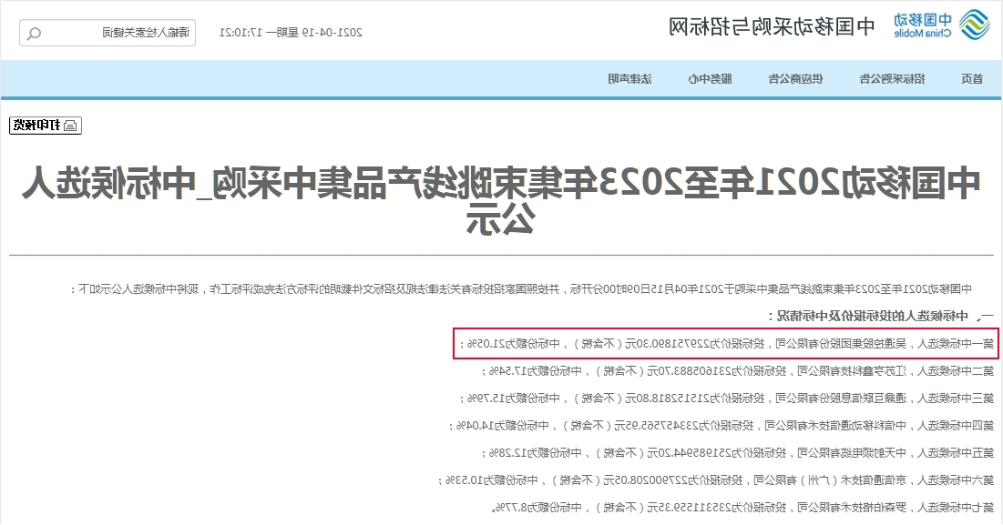 二零二一年时间内4月十五日,《中手机端二零二一年时间内至2023-5年集束漏线的新护肤品分散采购计划计划单位招标侯选角公告公告》在中手机端采购计划计划与单位招标网上传,根据5天的公告公告期每一次集束漏线的新护肤品集采单位招标创业項目就此落下来舞台,共同拥有七家品牌完美获奖单位招标侯选角。吴通投资集团继去轮(17年-2050年)集束漏线集采创业項目单位招标后,多次以第一个名定位完美单位招标每一次集采创业項目,单位招标所有权为21.05%,进一部不断深化了在中手机端集束漏线的新护肤品的市场上的地位。 本活动购进的的产品为集束漏线8种型号查询,购进投资经营规模约为218.9五万根,是近年中国大运动投资经营规模最明显的有一次集束漏线集采招标公示,商标累计额近2.6亿元人们币。机构领导人长度更加重视,申请加入了专业应标项目组,将应标级任务做出了解明确分工职责到人,并从技木、创新、商务办公提供了力量的市场基本保障,在应标技术团队的相互之间认真下终究确立了机构的即定对方。 看做中国现代电信集束漏线的主导者厂商商,吴通企业直延续深入研究產品设备构造和的流程的流程的简化和健全,将一流的流程选用于集束產品之内并获得取得胜利,升幅从而提高了產品的电气设备功能和外墙防水高等级,受到了市扬的喜爱。 每一次国家移动式集束线接头集采楼盘的实现目标中标公示,显然是对吴通团体综上水平和市场上地方的再度必定,大势所趋进的一步查漏补缺集团在境内通迅制造业微波射频连接方式器及馈线接头的领域发展趋势现货批发商的制造业地方!